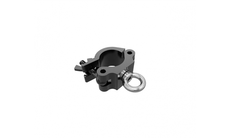 Pince professionnelle robuste avec boulon à œil pour tube de 50 mm. Compatible avec les fermes F31, F32, F33, F34 et DT44P. Finition noire.
