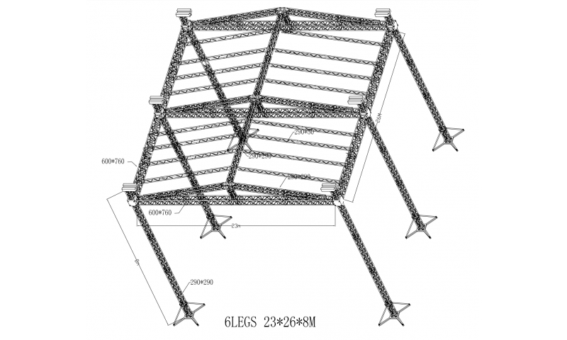 Armazón de techo Topfinger Peak (Tamaño: 23*26*8m y viga: 600*760mm y pilar: 450*450mm y código: TFR-PRT10)