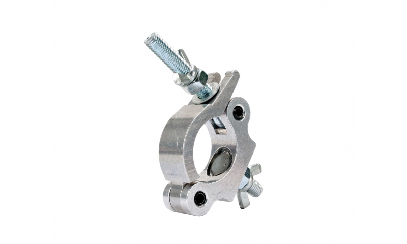 Abrazadera de acero profesional de alta resistencia que se envuelve de forma segura alrededor de un tubo de armadura de 2 pulgadas. Con un límite de peso máximo de 675 libras, el TFR-250 está diseñado para accesorios más pesados, como cabezales móviles, escáneres, etc. Su envoltura de 360 grados ayuda a proteger contra rayones su truss.