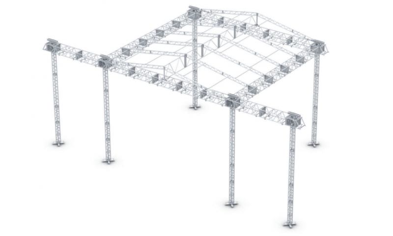 Il s‘agit d‘une ferme de toit robuste avec 6 piliers, utilisée pour les concerts extérieurs.